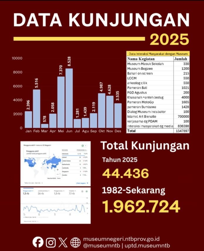 “Peningkatan ini pada dasarnya dipengaruhi oleh jangkauan kunjungan dan interkasi Masyarakat,” ujar Kepala Museum NTB, Ahmad Nuralam, Selasa 30 Desember 2025.