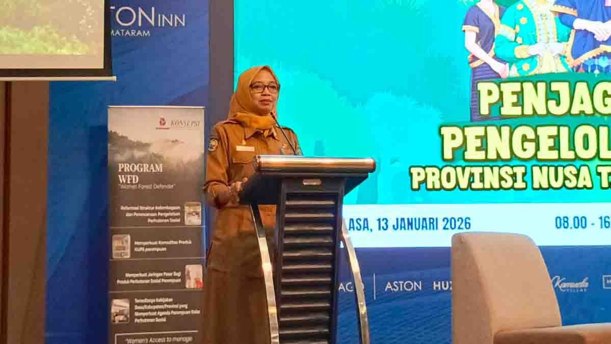 Mataram (suarantb.com) – Kepala Bappeda Provinsi NTB, Baiq Nelly Yuniarti, membuka Lokakarya Inisiasi Pembentukan Forum Perempuan Penjaga dan Pengelola Hutan Indonesia (FP3HI) di Hotel Aston Inn, Selasa (13/1/2026). Kegiatan yang diinisiasi oleh Mitra Pembangunan KONSEPSI ini menjadi langkah awal penguatan peran perempuan dalam menjaga kelestarian hutan sekaligus mendorong peningkatan kesejahteraan masyarakat di sekitar kawasan hutan.