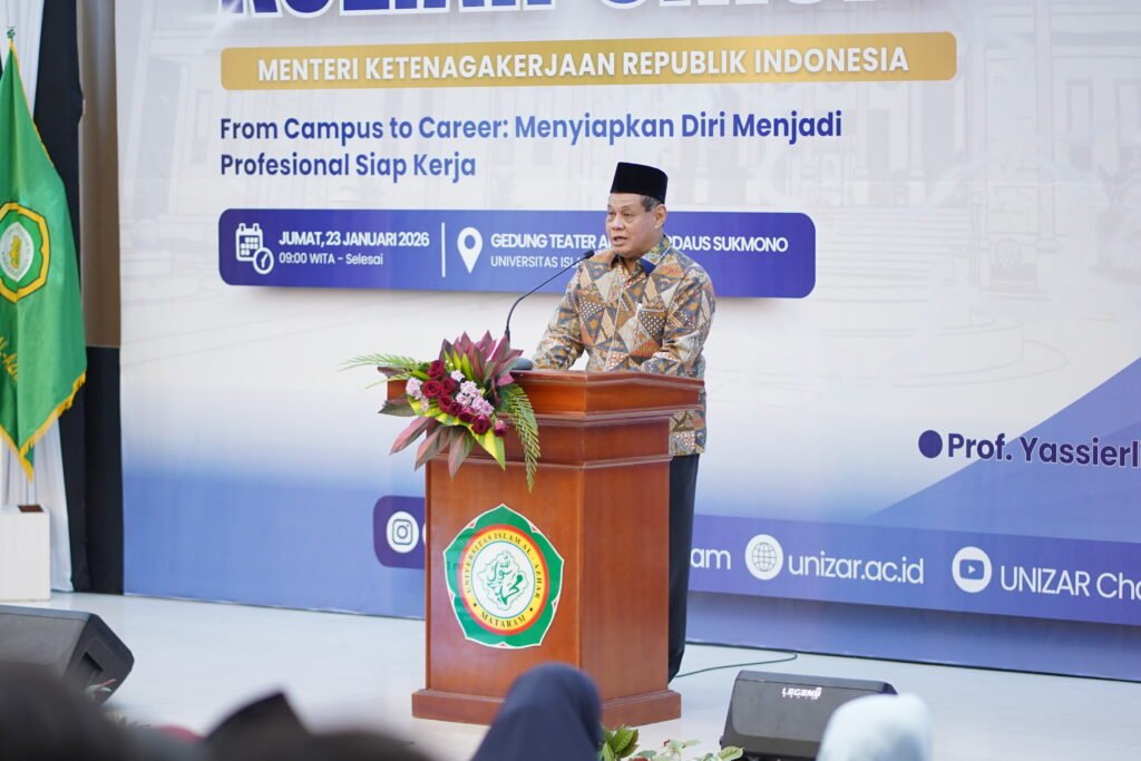 Mataram (suarantb.com) – Universitas Islam Al-Azhar (Unizar), perguruan tinggi swasta terkemuka di Nusa Tenggara Barat (NTB) dengan reputasi akademik yang terus meningkat, kembali menunjukkan perannya sebagai institusi pendidikan tinggi yang responsif terhadap dinamika zaman dengan menyelenggarakan Kuliah Umum bertema “From Campus to Career: Menyiapkan Diri Menjadi Profesional Siap Kerja”. Kegiatan ini berlangsung di Gedung Teater Ahmad Firdaus Sukmono Universitas Islam Al-Azhar, pada Jumat (23/1/2026), mulai pukul 09.30 Wita hingga selesai.