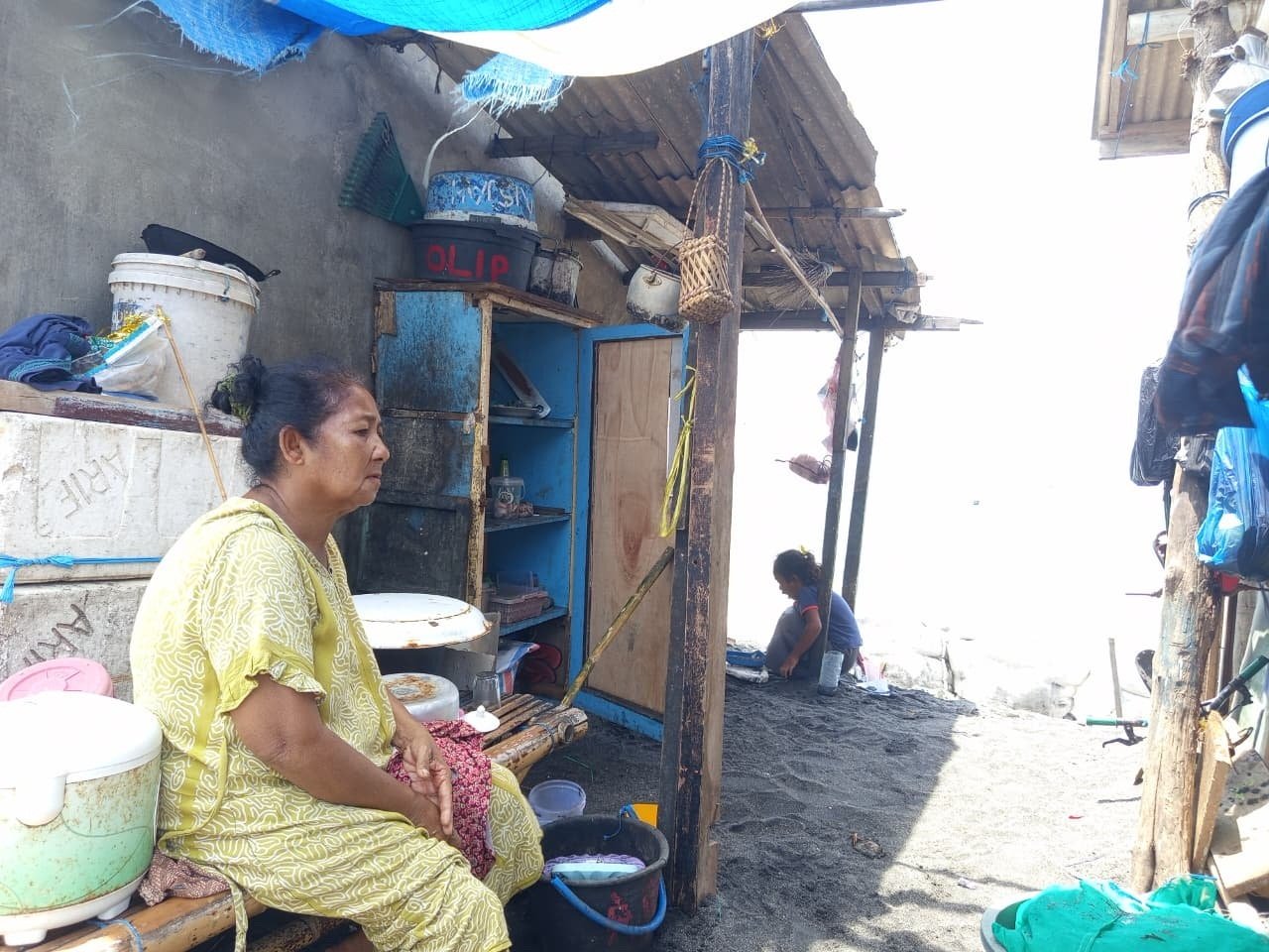 “Rumah saya kena air laut. Barang dagangan, uang hasil jualan, sampai sebagian peralatan dapur hanyut,” ungkapnya.