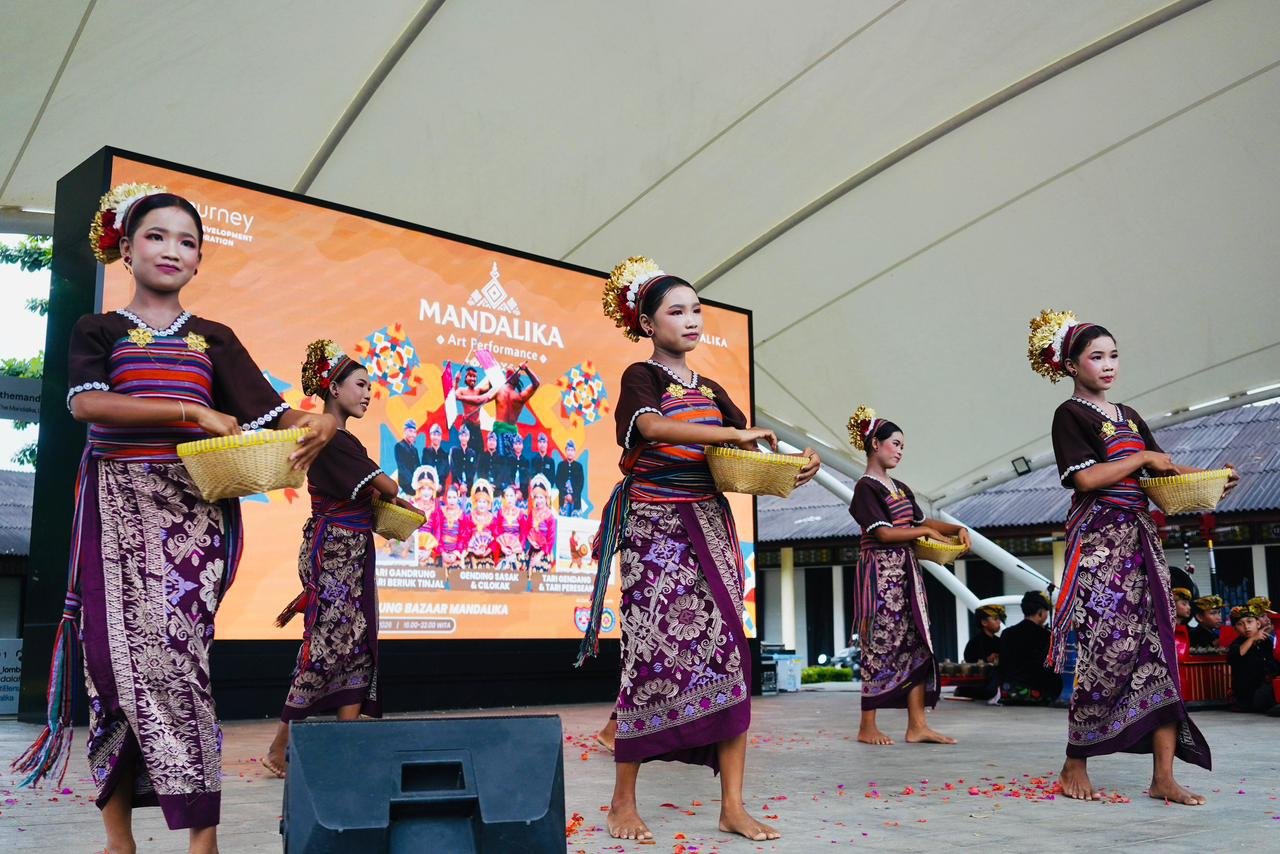 Mandalika Art Performance menampilkan beragam pertunjukan seni khas Lombok. Mulai dari Tari Gandrung, Tari Beriuk Tinjal, Gending Sasak, Cilokak Ensemble, hingga Tari Gendang dan Peresean yang jadi daya tarik bagi wisatawan.
