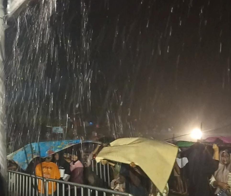 Praya (suarantb.com) – Malam puncak perayaan Festival Pesona Bau Nyale yang berpusat di kawasan Pantai Seger, Kuta, Lombok Tengah (Loteng) Sabtu (7/2/2026) berlangsung di luar harapan. Sejumlah agenda terpaksa harus dibatalkan, termasuk konser musik grup band Geisha. Hal ini setelah hujan deras menguyur kawasan Pantai Seger dan sekitarnya selama hampir tiga jam lebih.