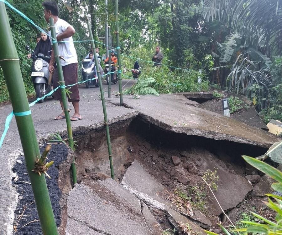 Kondisi jalur ini menjadi perhatian serius setelah hujan deras yang mengguyur pada Sabtu (7/2/2026) malam mengakibatkan badan jalan ambrol ke jurang sedalam 3 meter. Dampaknya, mobilitas masyarakat di wilayah lingkar Gunungsari lumpuh total bagi kendaraan roda empat, sementara pengendara roda dua harus ekstra waspada saat melintasi sisa aspal yang kian menyempit.
