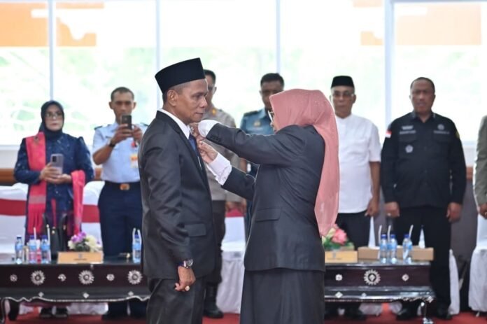 Plt Sekda NTB, Lalu Mohammad Fauzal menyampaikan sambutan Gubernur NTB atas pelantikan Fahruddin sebagai PAW anggota DPRD NTB sisa masa jabatan 2024-2029.(Suara NTB/ist)
