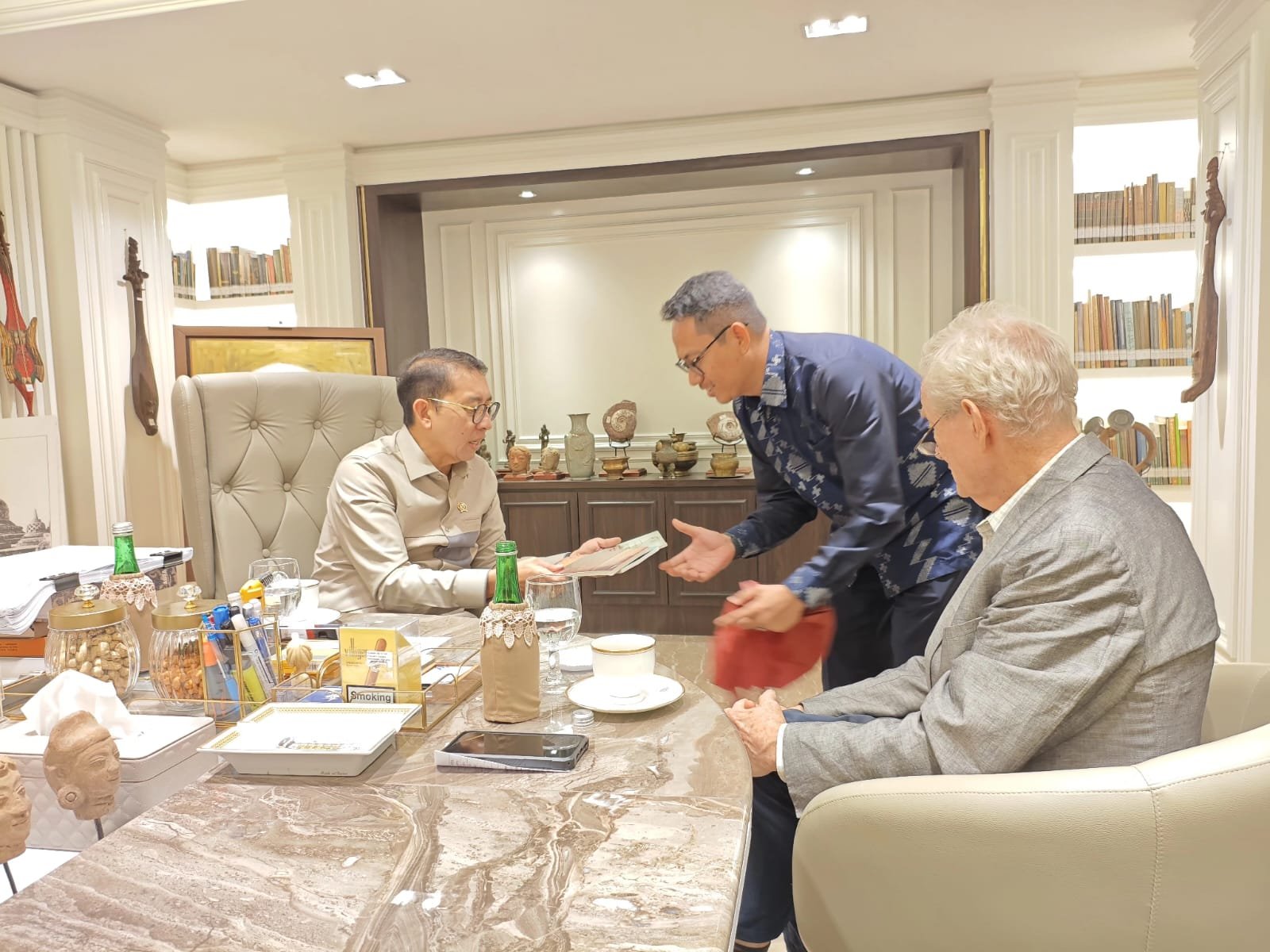 Jakarta (suarantb.com) – Kepala Museum Negeri NTB Ahmad Nuralam bertemu dengan Menteri Kebudayaan Fadli Zon di ruang kerjanya, Selasa, 17 Februari 2026. Pertemuan tersebut turut dihadiri Michael Abbot dan Dr. Muhammadun untuk membahas rencana peluncuran buku tentang Wastra Lombok yang dijadwalkan berlangsung pada Juni 2026 di Adelaide, Australia.