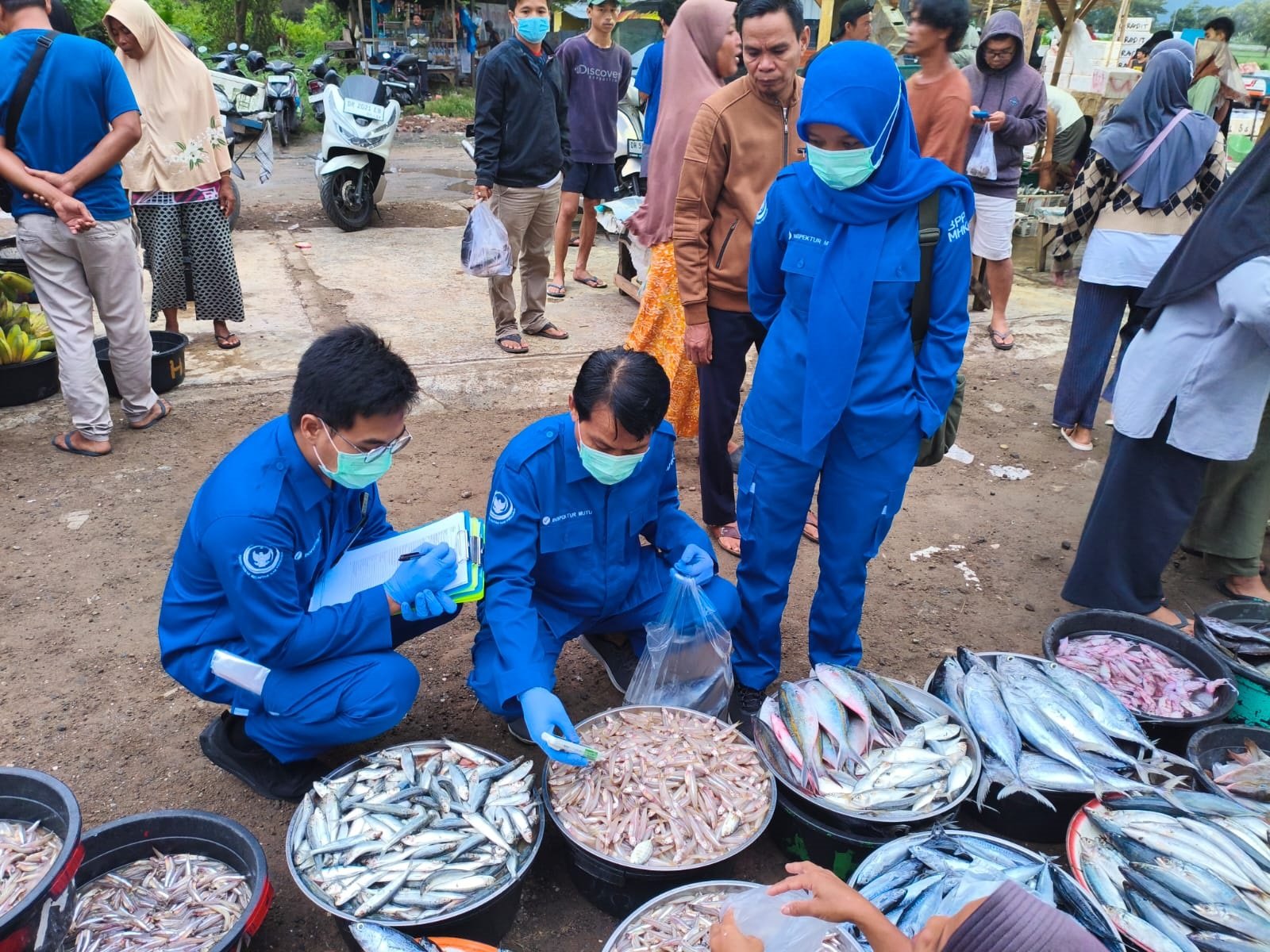 Petugas Badan Mutu KKP Mataram melakukan pemeriksaan secara langsung terhadap kondisi fisik ikan (uji organoleptic), penanganan dan penyimpanan produk, serta pengujian mutu dan keamanan hasil perikanan dengan parameter uji ALT, E. coli dan Salmonella. Pemeriksaan ini dilakukan untuk mendeteksi kemungkinan memastikan kesegaran produk yang dijual kepada masyarakat. Kegiatan ini juga bertujuan untuk memantau stok ikan selama bulan Ramadhan.
