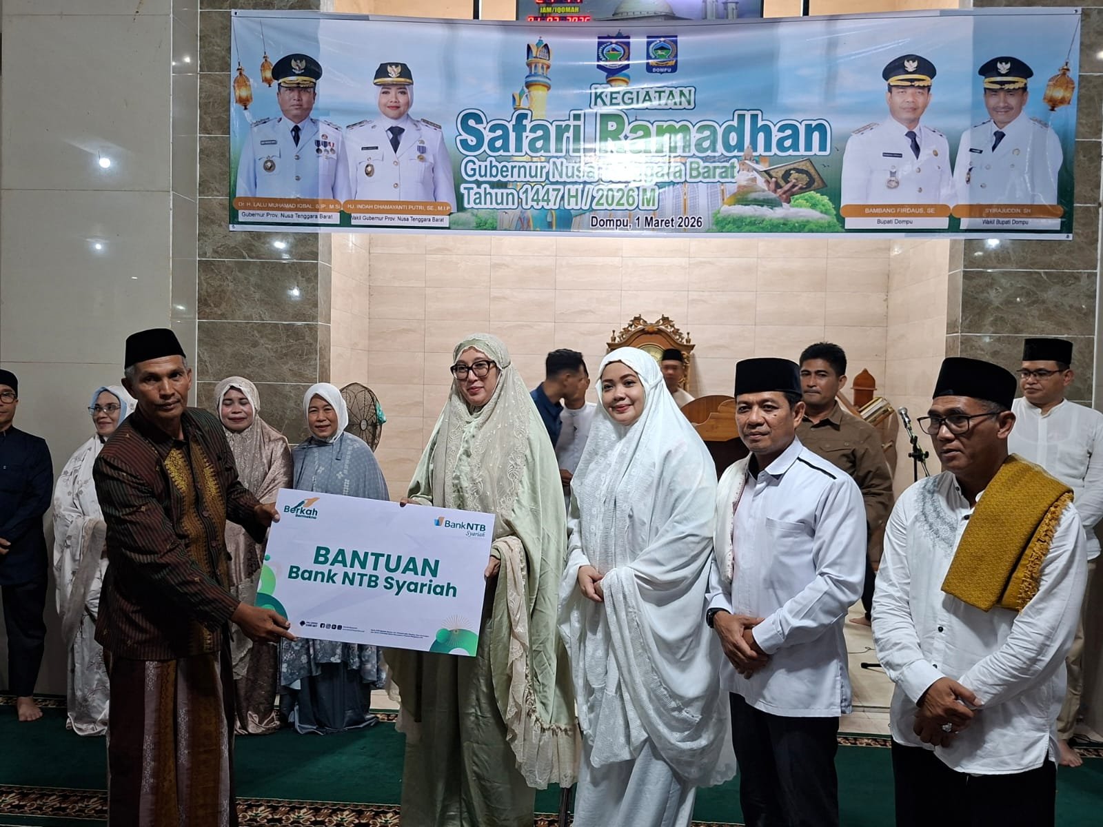 Dompu (Suara NTB) – Wakil Gubernur NTB, Hj. Indah Damayanti Putri menggelar kegiatan safari Ramadan di Masjid Qusurul Jannah Kelurahan Kandai Dua, Kecamatan Woja, Kabupaten Dompu, pada Minggu, 1 Maret 2026.