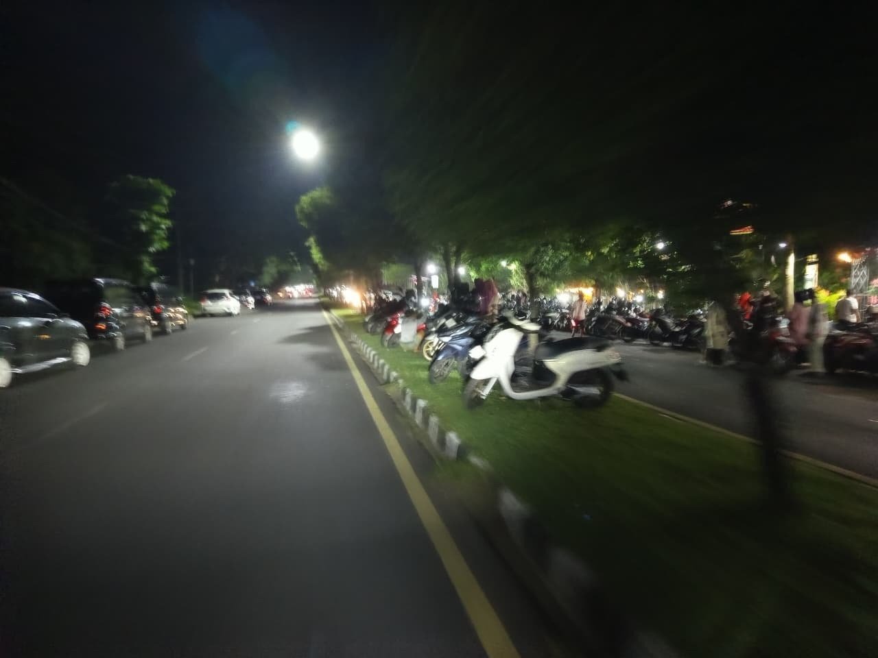 Pantauan Suara NTB di lokasi pada Minggu (8/3/2026) malam sekitar pukul 21.00 Wita terlihat sekitar 10 unit sepeda motor terparkir di atas median jalan tersebut.
