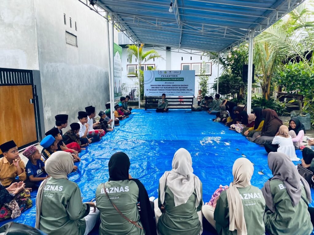 Mataram (suarantb.com) – Mahasiswa Beasiswa Cendekia Baznas (BCB) Universitas Muhammadiyah Mataram (Ummat) menggelar program Pesantren 1000 Cahaya Ramadan 1447 H di Pondok Pesantren Mujahidil Falah, Desa Bajur, Kecamatan Labuapi, Kabupaten Lombok Barat, pada Sabtu, 7 Maret 2026. Kegiatan ini diikuti oleh anak yatim dan penyandang disabilitas sebagai penerima manfaat utama.