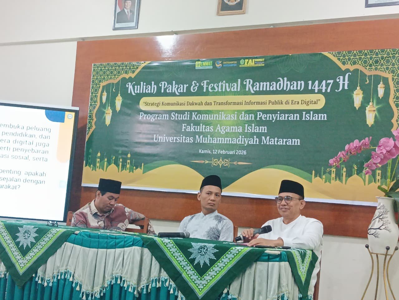 Isu tersebut mengemuka dalam kegiatan Kuliah Pakar dan Festival Ramadan 1447 Hijriah yang diselenggarakan Program Studi Komunikasi dan Penyiaran Islam (KPI), Fakultas Agama Islam Universitas Muhammadiyah Mataram (Ummat), Kamis (12/3/2026).