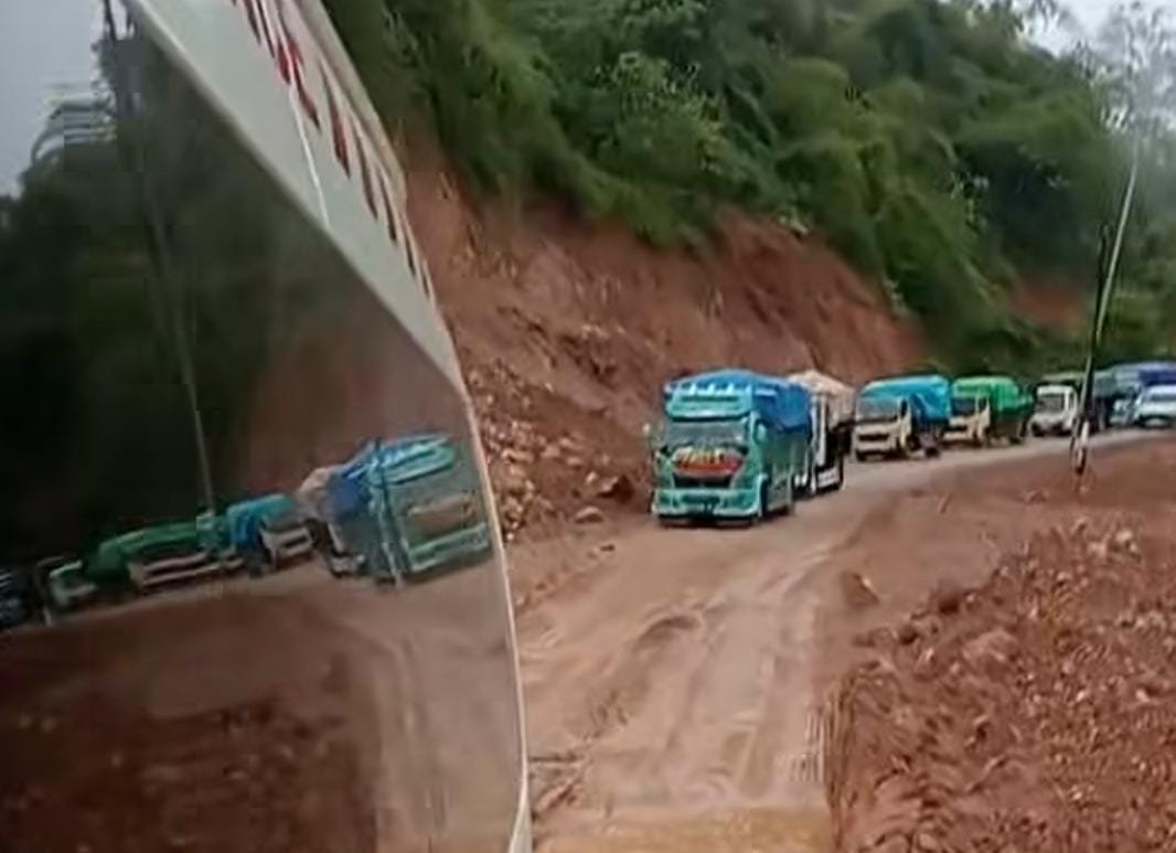 Akibat pergerakan tanah, setiap kali musim hujan terjadi longsor. Hal ini semakin mempersulit proses perbaikan jalan. “Jadi jalan awalnya itu yang tadinya di sini sudah bergeser sekitar 8 meter. Jadi itu dibersihkan dulu, dikembalikan ke jalan awal gitu,” sambungnya.