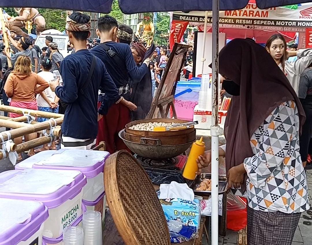 Mataram (suarantb.com) – Ratusan pedagang kaki lima (PKL) dan pelaku Usaha Mikro, Kecil, dan Menengah (UMKM) di Kota Mataram memanfaatkan momentum Parade Budaya Ogoh-ogoh untuk berjualan di sepanjang rute acara, Rabu (18/3/2026). Kegiatan budaya tahunan tersebut tidak hanya menjadi daya tarik wisata, tetapi juga mendatangkan berkah ekonomi bagi masyarakat.