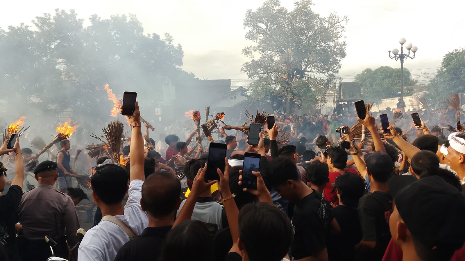 Tepat pada Rabu 18 Maret 2026, sekitar pukul 17.30 Wita, kegiatan saling serang dan memukul lawan dengan menggunakan daun kelapa kering (bobok) yang sudah menyala dengan api dilangsungkan.