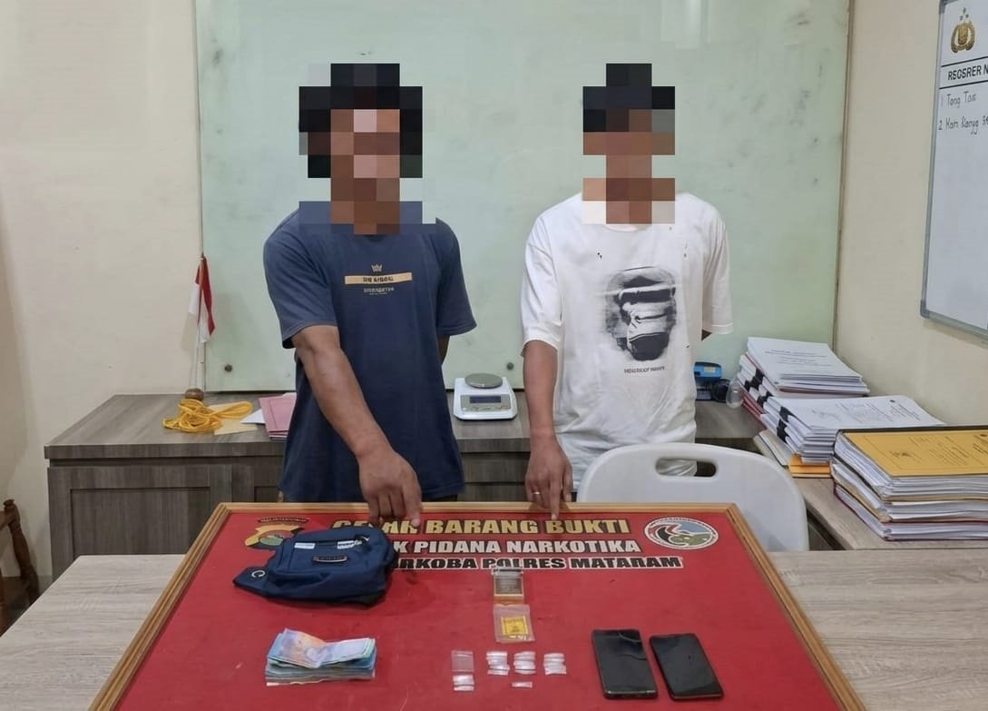 Mataram (Suara NTB) – Tim Opsnal Satuan Reserse Narkoba Polresta Mataram menangkap dua pria yang diduga akan melakukan transaksi jual beli sabu di Jalan Pariwisata, Dusun Pakel, Desa Gunungsari pada Kamis malam 26 Maret 2026.