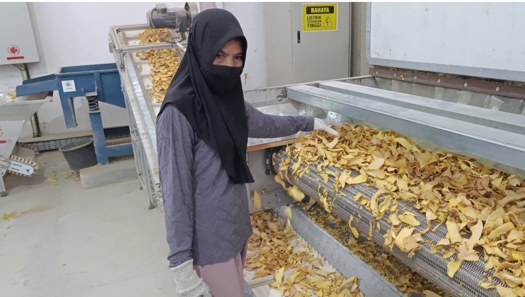 Pabrik porang ini sudah mulai beroperasi. Terlihat sebanyak 750 ton bahan baku sudah didatangkan dari berbagai daerah. Pabrik dengan kapasitas produksi 60 ton per hari ini sudah mulai produksi chip porang dan tepung porang.